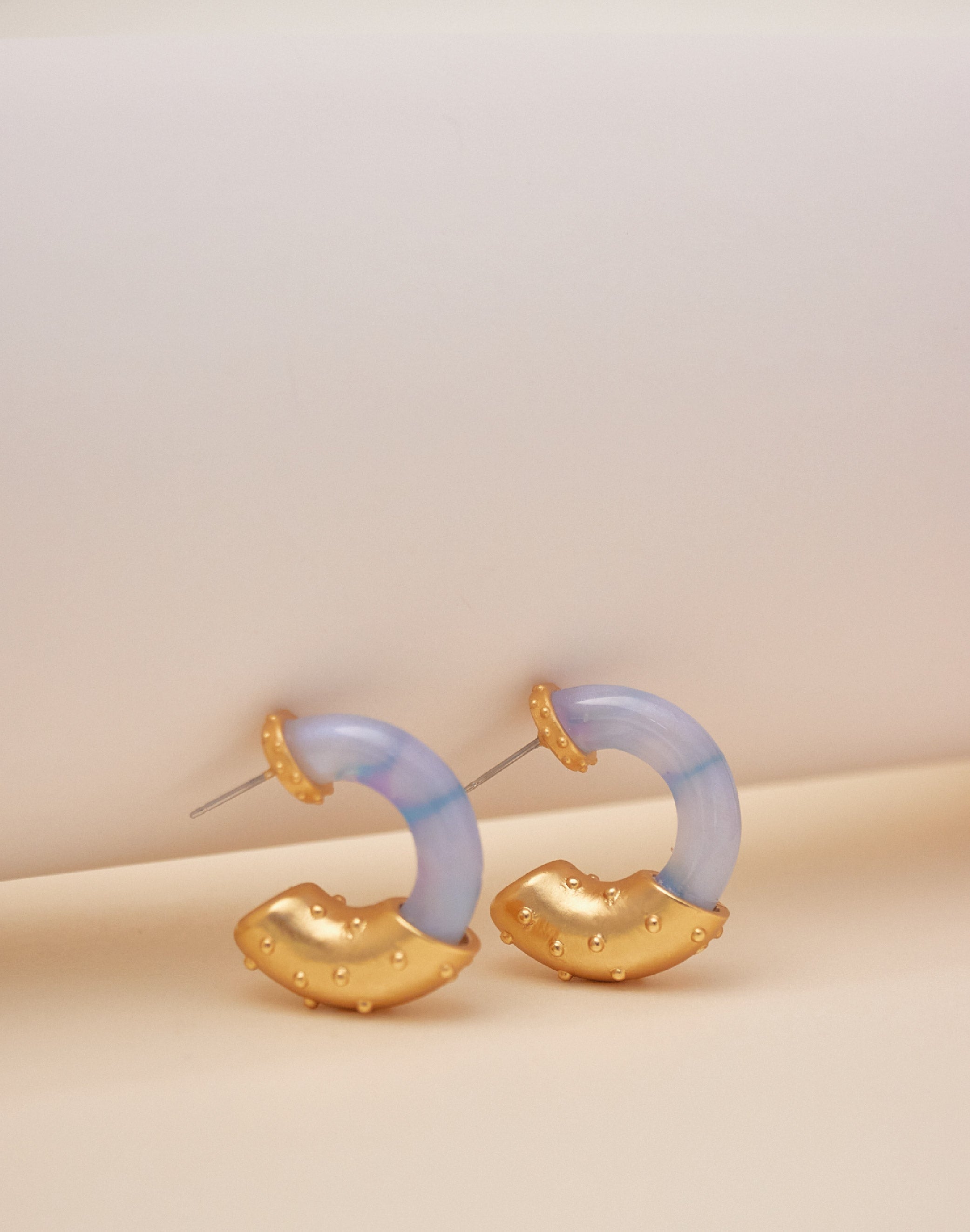Candongas Ópalo con decoración en resina azul hielo que capturan la luz como cristales congelados. Cada par brilla con ese toque translúcido y que evoca invierno eterno. Perfectas para quien ama los detalles delicados y los colores que hipnotizan. Lleva la magia del hielo en tus orejas y deja que todos noten ese brillo especial que solo tú tienes.