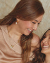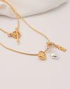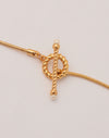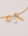 Un collar versátil en oro brillante con detalles de cristales y perlas plásticas, ideal para destacar en ocasiones especiales.