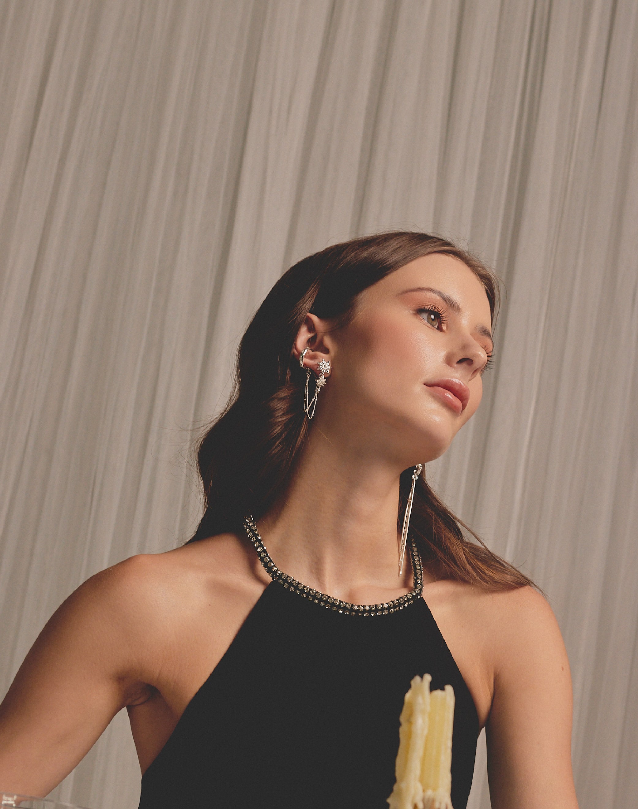 Descubre los Aretes Sunlight, un par asimétrico que ilumina tu look con detalle y originalidad. Una pieza combina un earcuff unido a una delicada cadena, mientras que la otra deja caer la cadena como un pendiente fluido. Perfectos para quienes aman el estilo único que atrae todas las miradas.