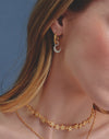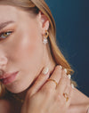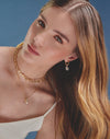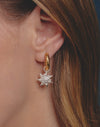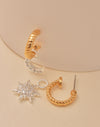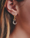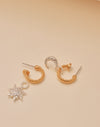 Estas candongas combinan el brillo del oro y la plata para un look único. Cada una lleva un dije removible: una estrella y una luna. Cambia los dijes cuando quieras y dale un toque especial a tu estilo con estas candongas.