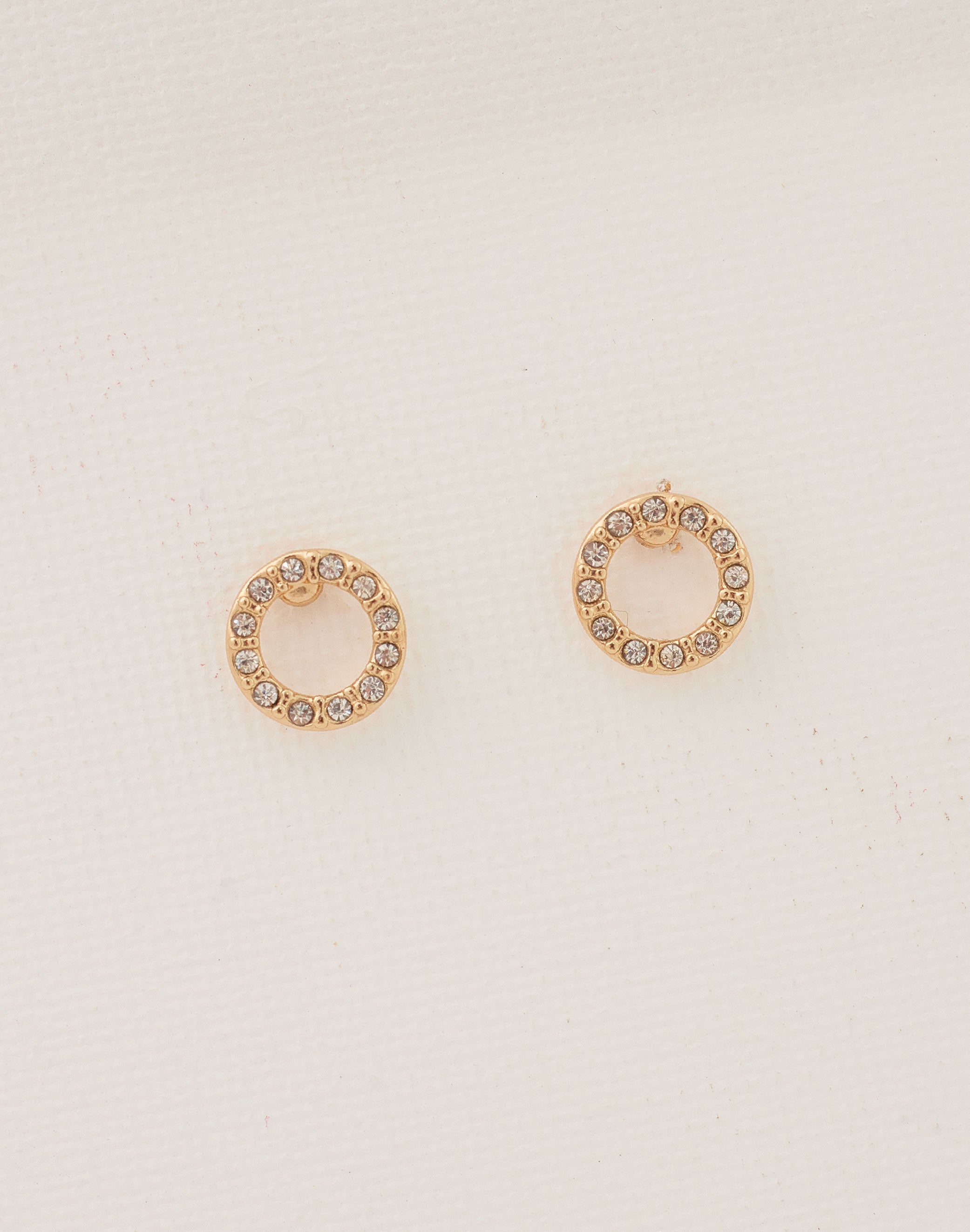 Aretes clásicos con detalles en cristal, ideales para un look sofisticado y atemporal. Especificaciones: Baño en Oro 24k Medidas: Diámetro 10 mm Peso aproximado: 1.5 g