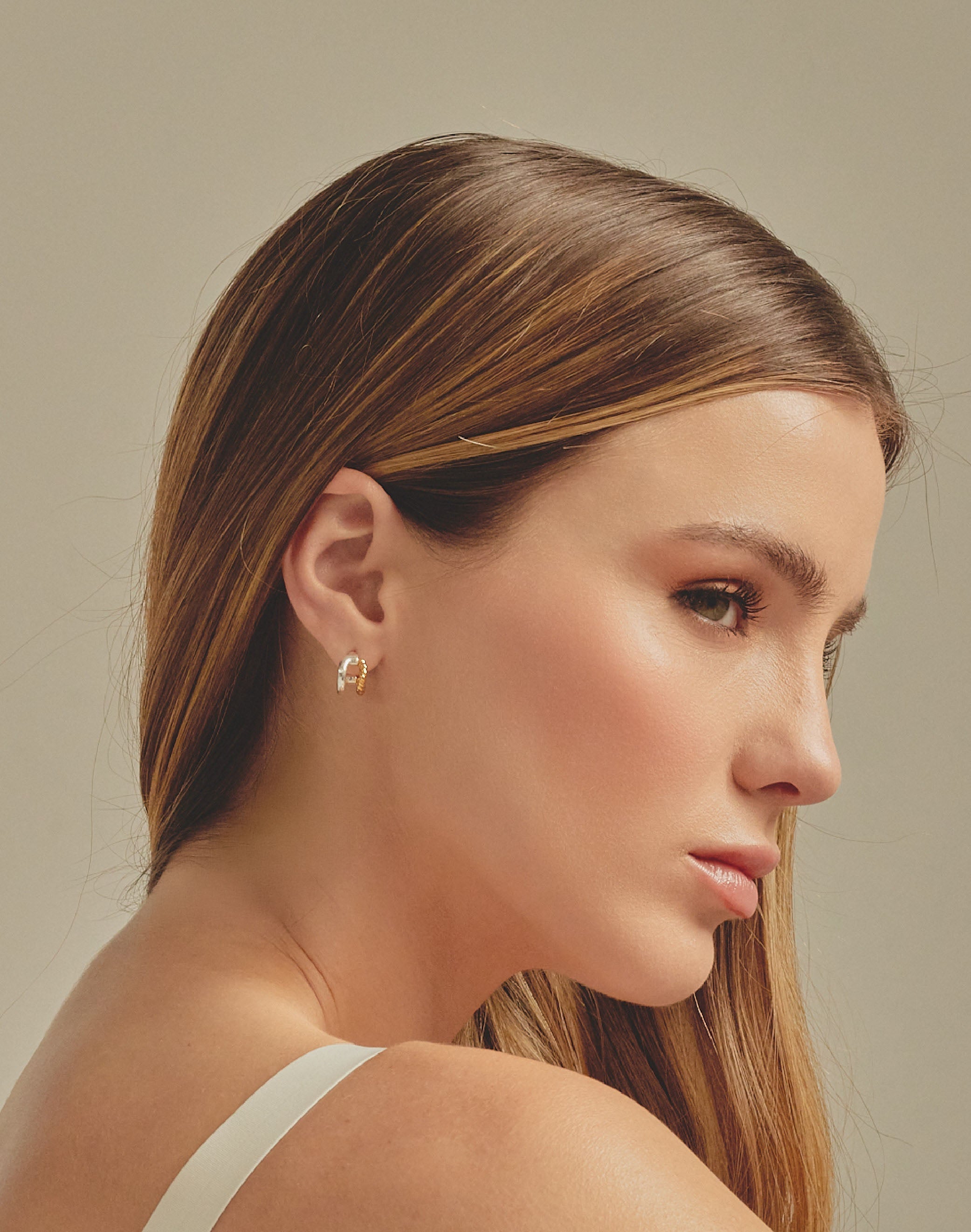 Estas candongas Soho combinan oro y plata para un look único y sofisticado. Su tamaño pequeño y diseño sutil las hace perfectas para darle un toque elegante a cualquier atuendo. Ideales para quienes buscan un accesorio delicado que se convierta en el detalle justo para destacar.
