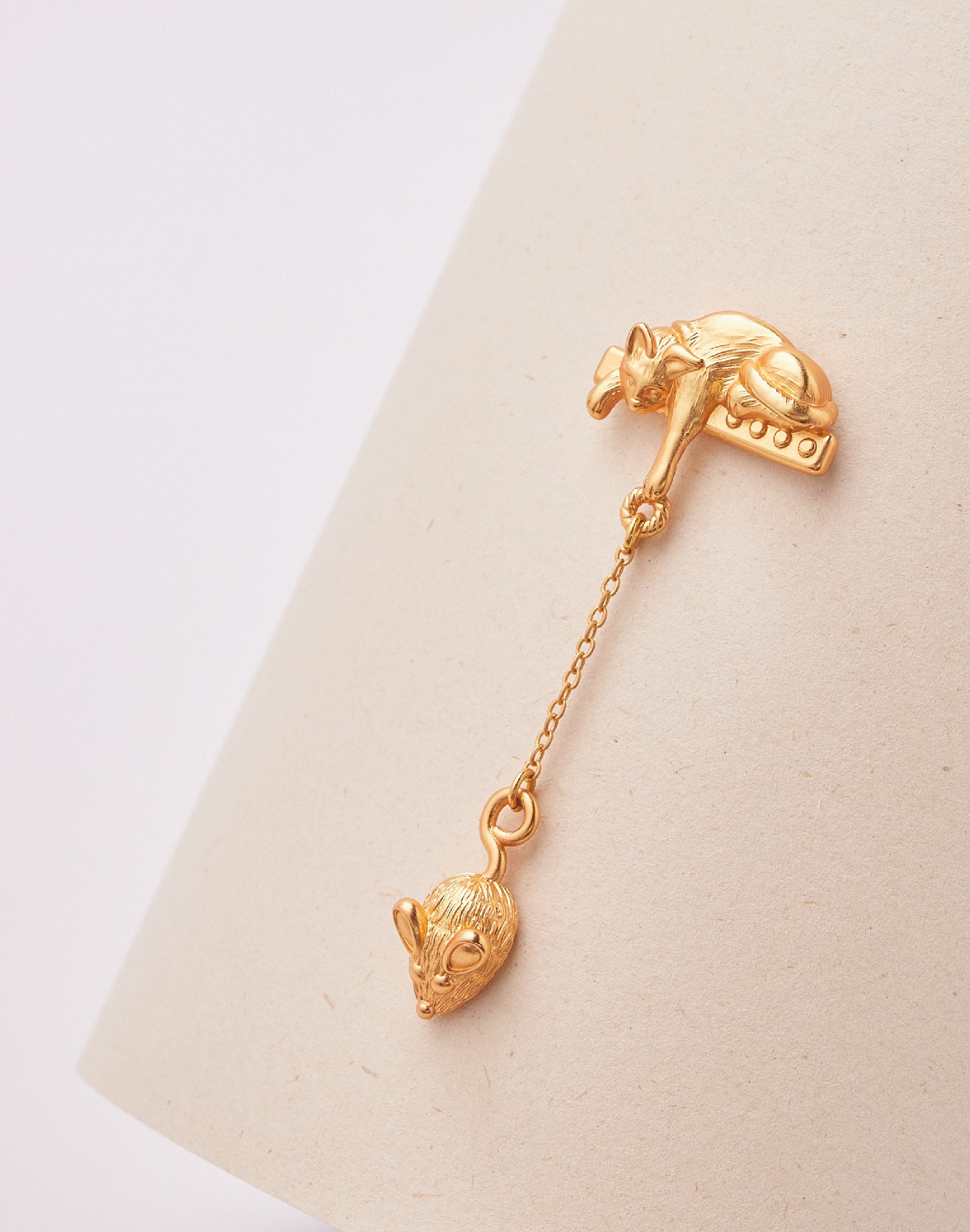 Añade un toque divertido a tu estilo con este Pin Gato con Ratón. Perfecto para decorar tu ropa, bolsos o cualquier accesorio, este pin juega con la clásica escena de gato y ratón para darle vida a todos tus looks.